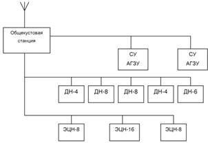 В общей сети промысла общекустовая СУ является узлом сети, одним из контрольных пунктов в этой сети. Весь обмен данными системы с оборудованием, размещенным на кусту, проходит через общекустовую СУ. По радиоканалу станция непосредственно связана с ДП (станцией связи ДП).