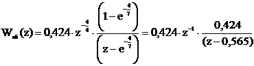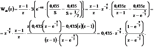 - передаточная функция демодулятора нулевого порядка, тогда z-передаточная функция объекта определяется выражением