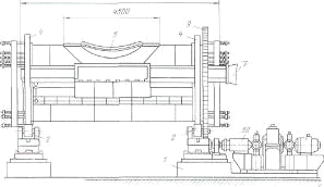 - фундамент; 2 - опорные ролики; 3 - бочка; 4 -