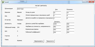 вывода справки для расчета заработной платы каждому работнику. Нажав на кнопку