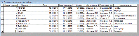 Рисунок 27 - Результат запроса «Заказы по