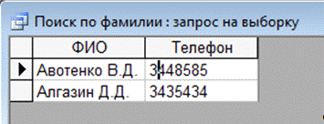 Фрагмент результата запроса показан на рисунке