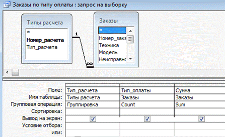 В запросе «Заказы по типу оплаты» используются