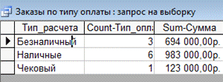 Рисунок 23 -Запрос «Заказы по типу оплаты»
