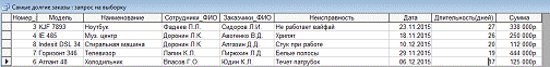 Запрос «Самые долгие заказы» выводит список из 5