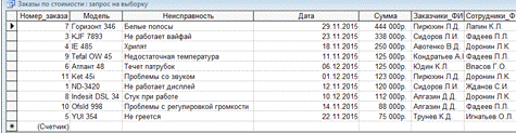 Рисунок 28 - Запрос «Заказы по стоимости»