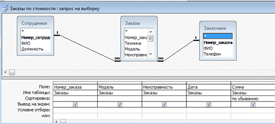 по стоимости». Данный запрос формируется на основе 3 таблиц, что видно на