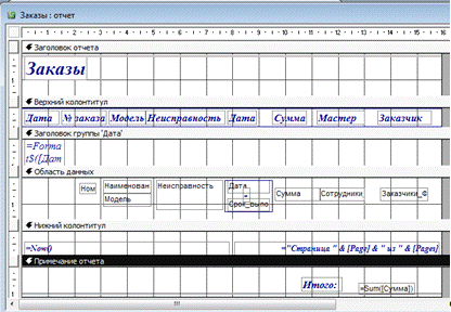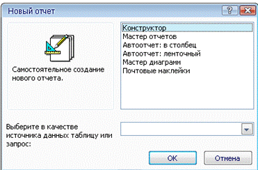 режима Мастера или вручную в режиме Конструктора. В ходе создания отчёта в