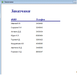 Рисунок 31 - Отчёт «Заказчики» В ходе курсового проекта была спроектирована и