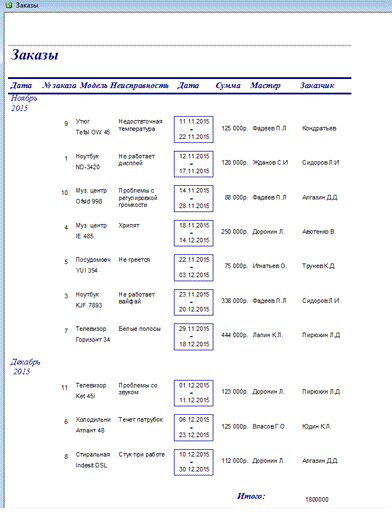 В роли информации, которую мы получаем в ходе работы с СУБД, выступают отчеты, сформированные на основе данных из БД, содержащие различные сведения о заказах, клиентах.
