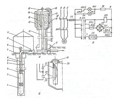 электрическая схема управления (в): 1- погружной электродвигатель; 2 -