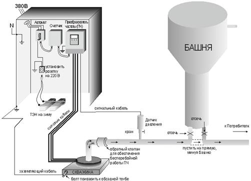 Водонапорные башни долгое время являлись основным элементом локального водоснабжения, но на сегодняшний день их установка экономически нецелесообразна, в то время как применение частотного преобразователя для управления насосом скважины снижает расходы по реконструкции башни и имеет ряд неоспоримых технических преимуществ: