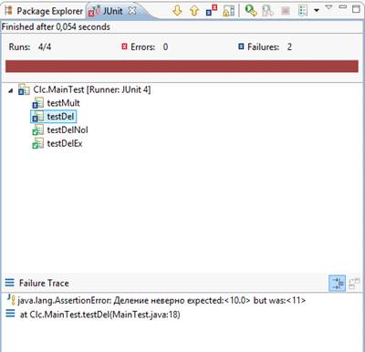 Методом testDel() делаем то же самое только для деления (тестируем метод del() класса Main.java).