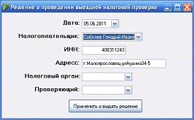 Программный продукт «Автоматизации учета выездных (документальных) налоговых и расчет налога в ИФНС России» разработан на СУБД Microsoft Access 2003 и Borland Delphi 7.