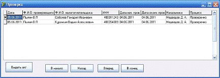 2. выводить на экран отчетные документы о налогоплательщике и дате проведения проверок;