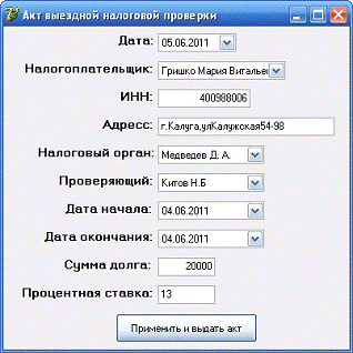 Задача дипломного проекта состоит в том, чтобы разработать программное обеспечение, позволяющее автоматизировать учет выездных (документальных) налоговых проверок в ИФНС России.