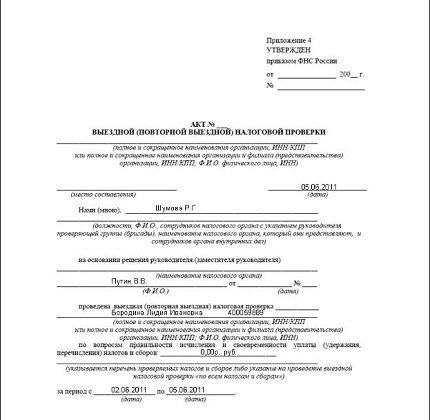 выездных (документальных) налоговых проверок