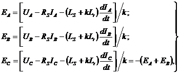 функционирующего на основе алгоритма вычисления фазных ЭДС из формул (4.1) и