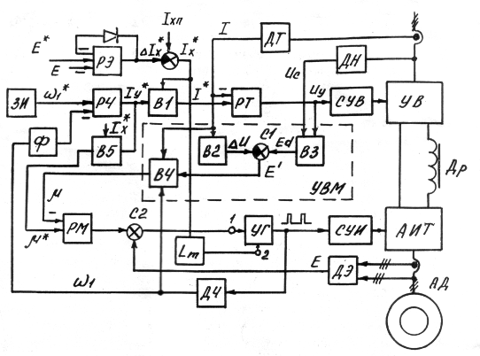 регулятором частоты РЧ) и ЭДС двигателя (с регулятором ЭДС РЭ). Заданное