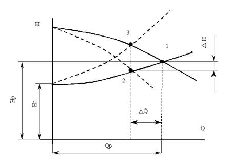 Рис. 2 Робочие режими насосной установки водоотлива.