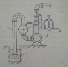 вода из водосборника 3 заполняет подводящий трубопровод. При остановке насоса