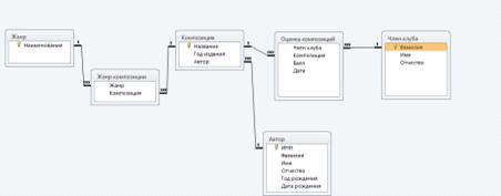 - Член клуба - поле, содержащее фамилию, имя, отчество оценившего композицию;