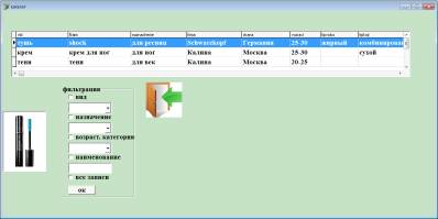 просматривать, редактировать, производить поиск заинтересующей вас косметики.