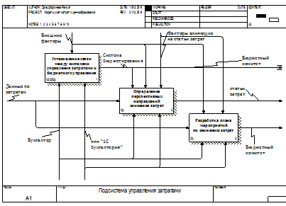 Декомпозиция работы «Подсистема управления затратами на предприятии» А1 показана на рис. 3 и состоит из следующих работ:
