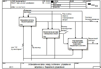 Декомпозиция работы «Установление связи между системами управления затратами и бюджетного управления» А1.1 показана на рис. 4 и состоит из следующих работ: