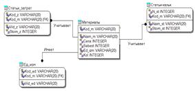 отчетов предоставляются из таблиц статьи затрат, статьи калькуляции, Материалы.