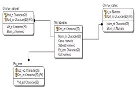 Данные о статьях затрат содержится информация: код затрат, виды затрат, стоимость затрат.