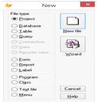 При разработке нового приложения, необходимо создать проект приложения. В дальнейшем надо добавлять в него созданные элементы приложения. Для создания нового проекта используем команду New (Новый) из меню File (Файл).