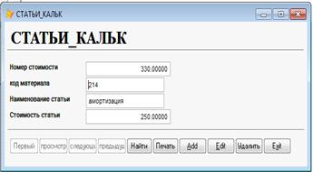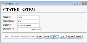 Рис.38. Форма статьи затрат