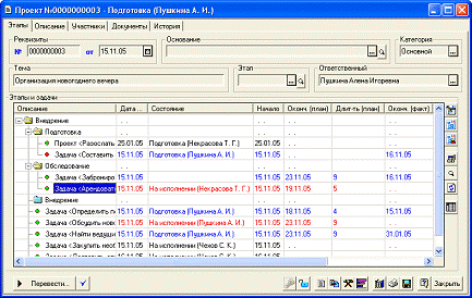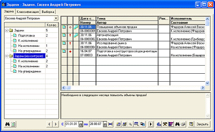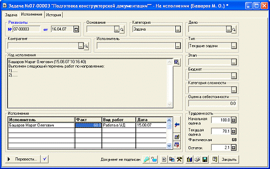 Задача предназначена для учета заданий и описывает способ их распределения по исполнителям с учетом организационной структуры предприятия.