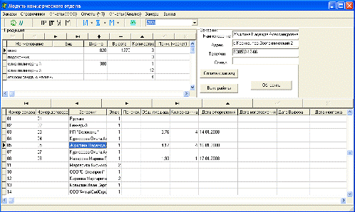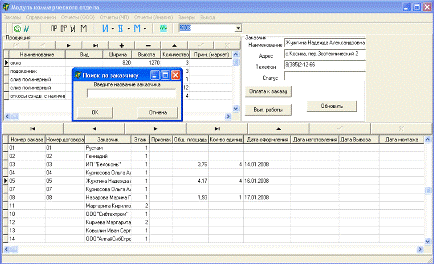 Модуль коммерческого отдела представляет собой блок ввода-вывода информации. В блоке вводится полная информация о клиенте: размеры, количество и комплектация изделий, автоматически считается общая площадь заказа.