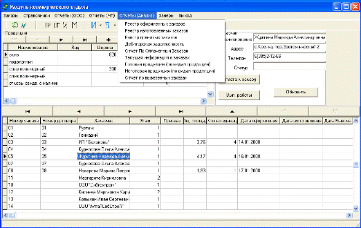 Рисунок 2.6 - Окно модуля коммерческого отдела