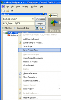 На рисунке 2 приведено окно программы после запуска. Для начала создадим новый проект. Для этого можно воспользоваться ссылками на заглавной странице (навигация как в Интернет обозревателе) или воспользоваться проверенным способом – через Главное меню – File|Project|PCB Project. Появится панель с деревом проектов (рис. 3).