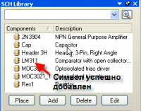 Второй путь. Отличается от первого только источником. Этим источником может быть чужая схема (плата) или библиотека. Для начала, нужно проследить, чтобы была открыта созданная нами библиотека символов.