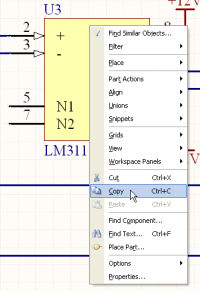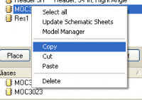 Переходим в библиотеку символов. Щелкаем правой кнопкой на нужном символе в списке и выбираем Copy (рис.95). Далее снова правой кнопкой мыши и выбираем – Paste.