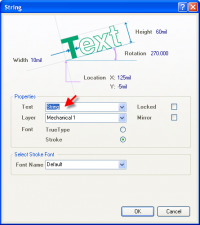 Делается это так: Добавляем текстовую строку в слое Mechanical командой Главное меню| PlaceString (рис.89).