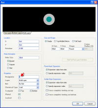 Это простейший способ создания компонента. Основное правило здесь – имя вывода символа должно совпадать с именем вывода посадочного места. Причем нужно проследить, чтобы количество выводов в символе было равно или меньше количества выводов посадочного места. В этом можно убедиться, открыв окно атрибутов вывода в посадочном месте, двойным кликом (рис.82).