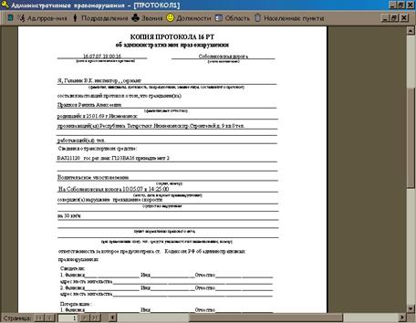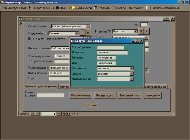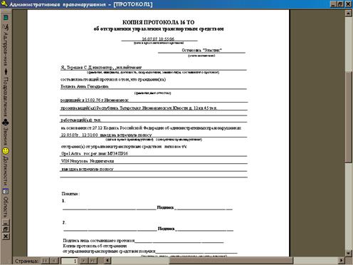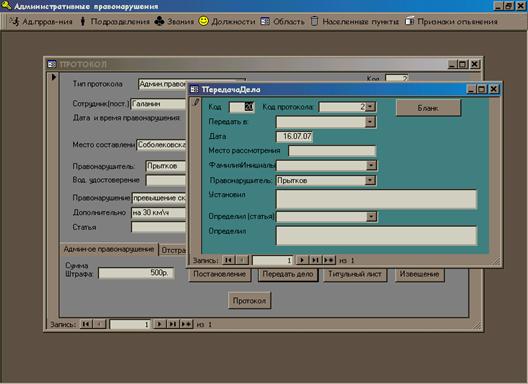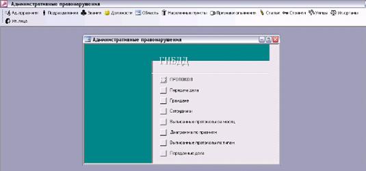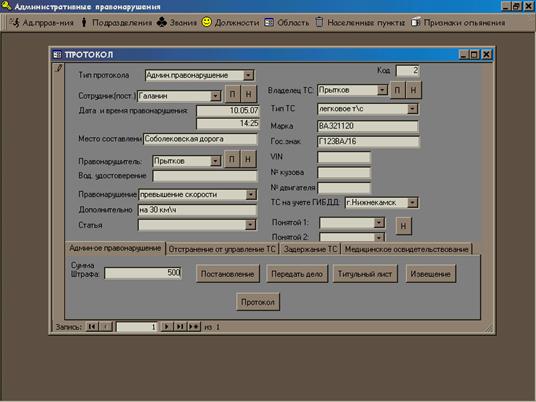 Структуры таблиц базы данных «Административные правонарушения», которые