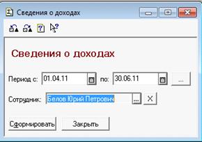 Сведения о доходах по оказанным услугам - позволяет сформировать отчет о доходах, полученных от оказания услуги (как по одному сотруднику, так и по всем).