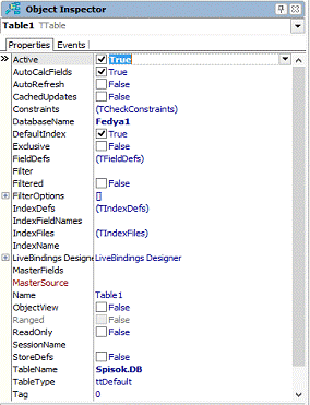 саму таблицю Spisok. db тому у властивості DataSetтакож обираємо Table.