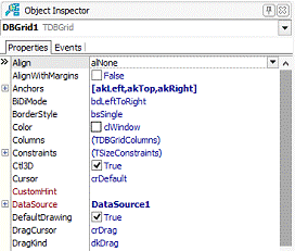 якій оберіть з випадаючого списку компонент Table. Компонент DBGrid відображує