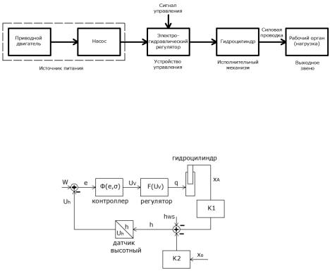 Рисунок 2. – Блок-схема замкнутой системы высотного регулирования положения рабочих органов
