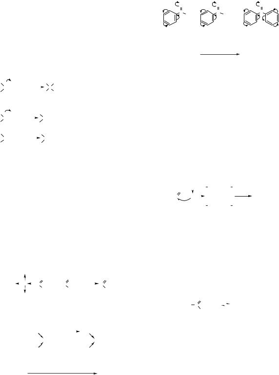 В ароматичних альдегідах і кетонах карбонільна група перебуває в сполученні з бензеновим кільцем, виявляючи –I- і –Мефекти. Вона відтягує на себе електронну щільність бензенового кільця, що приводить до зниження величини δ + на атомі Карбону карбонільної групи. Цим пояснюється нижча реакційна здатність ароматичних оксосполук порівняно з аліфатичними. Ароматичні альдегіди, як правило, більш реакційноздатні, ніж змішані й тим більше ароматичні кетони.