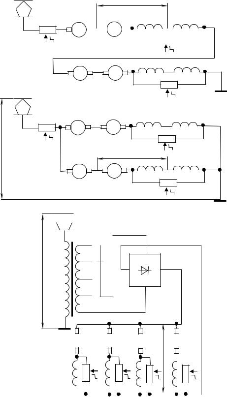 Схемы, позволяющие реализовать все способы регулирования скорости применительно к четырехосному электровозу с четырьмя ТД, показаны на рис. 3.2, а. При напряжении в контактной сети Uс = 3000 В все ТД включать параллельно нельзя, так как практически создать ТД с Uд. н > 1500 В невозможно.