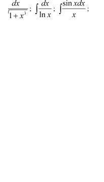 Сразу скажем, что интегрирование значительно сложнее дифференцирования. Дифференцирование любых элементарныхфункцийпроизводитсяпоопределеннымправилам,аинтегрирование требует в каждом конкретном случае индивидуального подхода. Разумеется, есть общие методы интегрирования, некоторые мы рассмотрим далее. Заметим, что производная от любой элементарной функции есть функция элементарная, а про неопределенный интеграл от элементарной функции этого сказать нельзя. Первообразная от элементарной функции может оказаться и не представимой с помощью конечного числа элементарных функций. Про такие функции говорят, что они не интегрируемы в элементарных функциях. Примерами так называемых неберущихся интегралов являются: