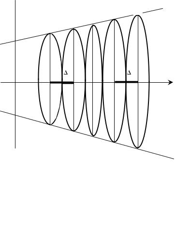 Разобьем полученное тело на слои с помощью секущихся плоскостей, перпендикулярных к оси 0х и пересекающих ее в точках x0 = a, x1, …, xn-1, xn = b. Каждый слой заменим прямым цилиндром. Объем каждого из этих цилиндров будет равен Vi = = py2i-1 Dxi,